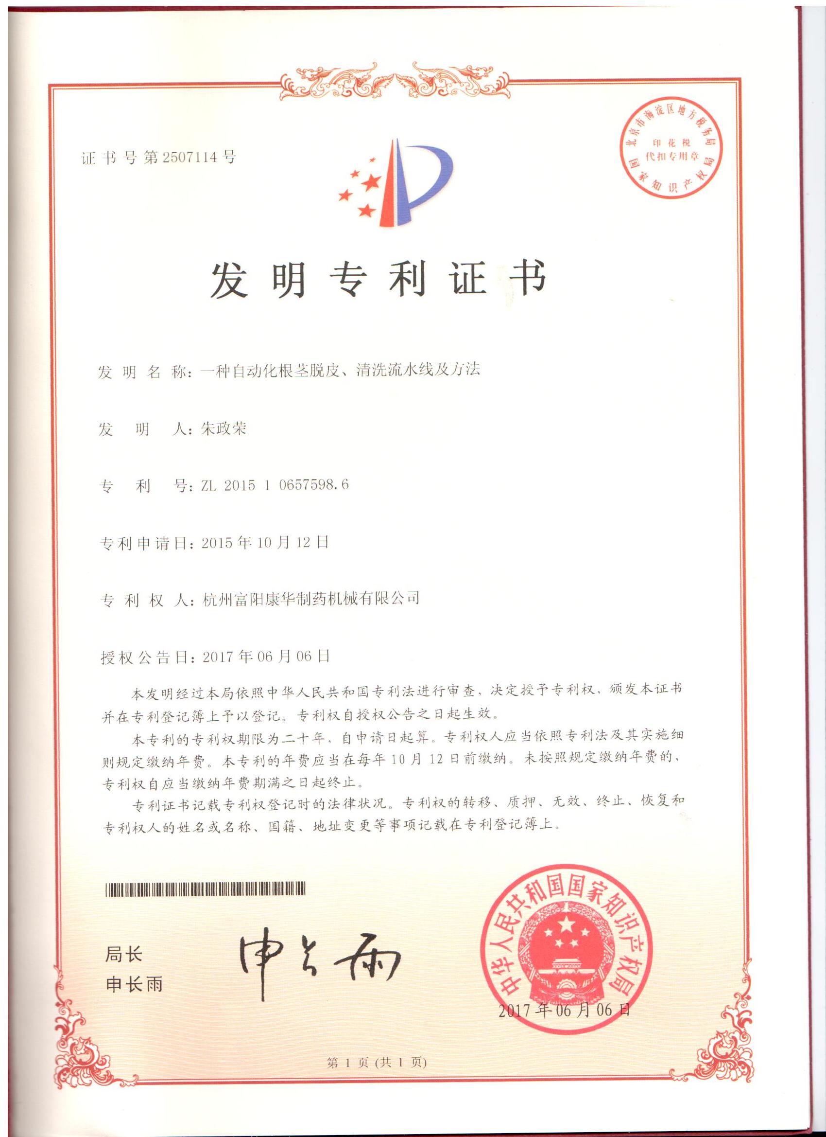 喜報!祝賀我司又獲得一項國家發明專利授權...